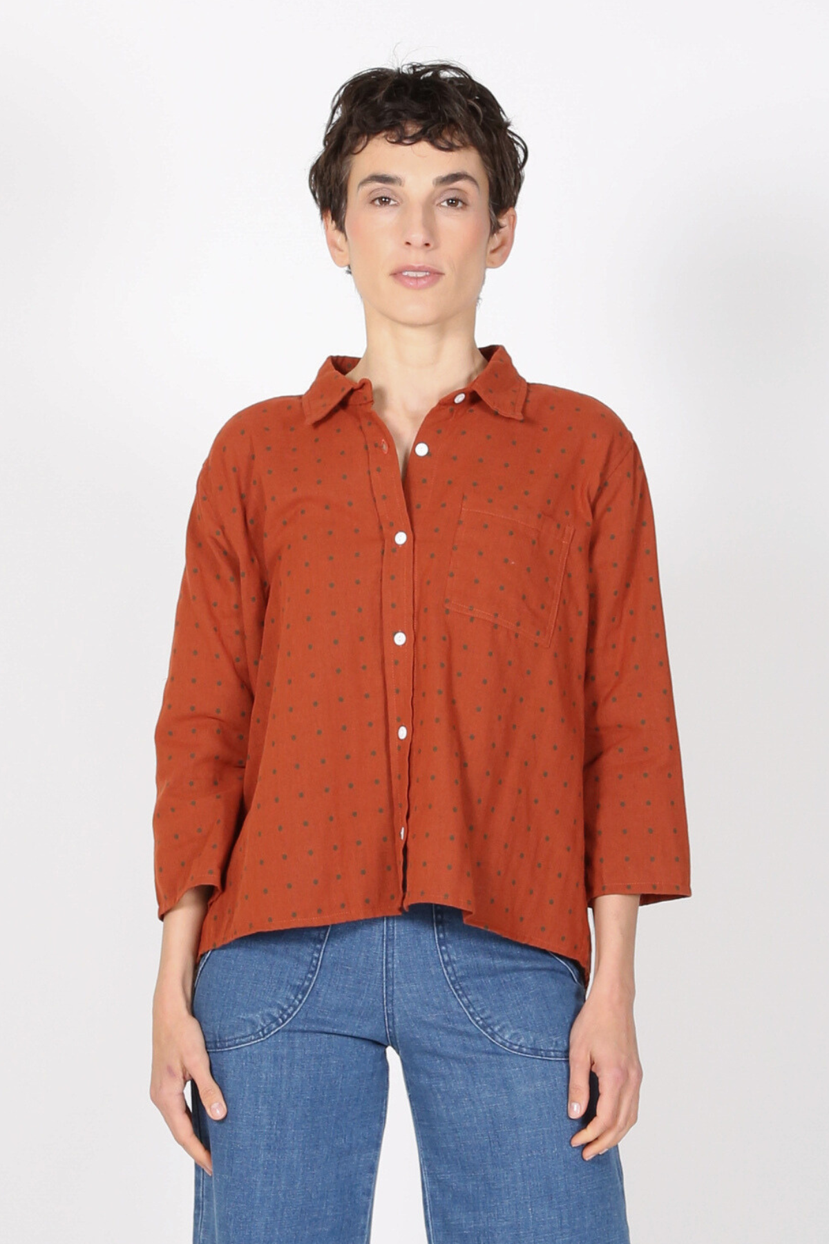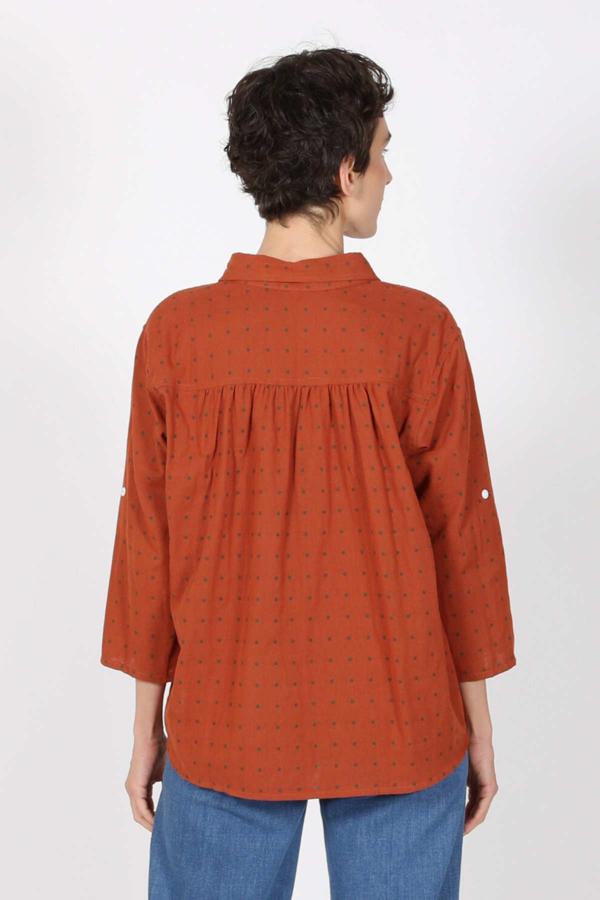 A playful classic with a refined twist, the Montparnasse Cotton Shirt in Orange is a celebration of bold simplicity. Made from a rich rust-orange cotton and patterned with subtle forest-green polka dots, this shirt brings a touch of Parisian charm to everyday wear. Its soft, breathable weave and relaxed silhouette make it perfect for warm afternoons, casual evenings, or spontaneous getaways. Pair it with denim, linen, or neutrals for a look that’s equal parts grounded and adventurous.