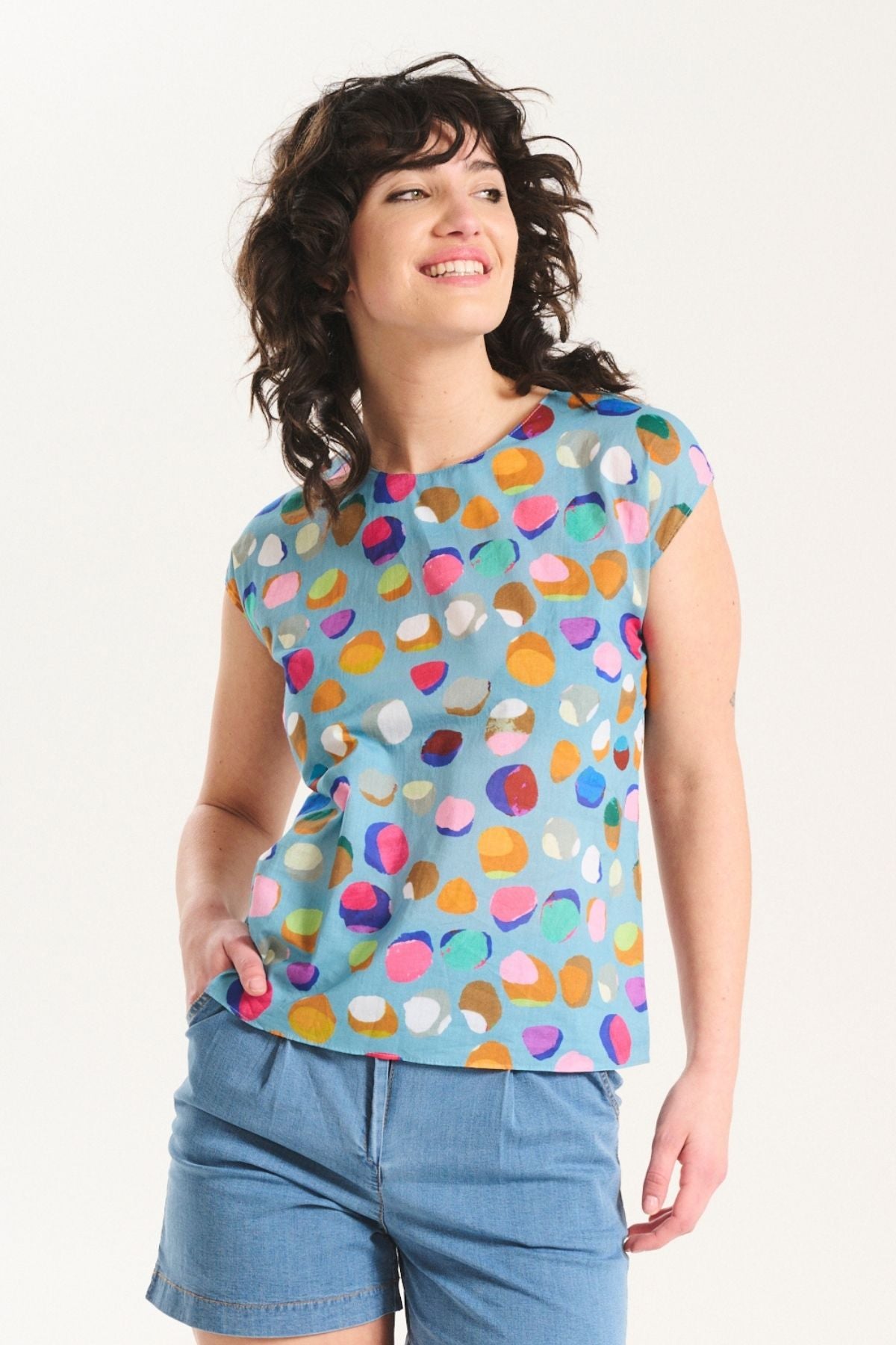 Confetti is a joyful, abstract print that captures the feeling of celebration in motion. Hand-painted dots scatter across the fabric in a playful mix of shapes and colours, creating a lively pattern that feels spontaneous and uplifting. Each brushstroke brings a sense of rhythm and whimsy, making every piece a little work of art.