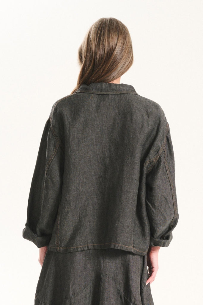 The Billie jacket in Slate dark grey is crafted from a luxurious 100% linen fabric.
