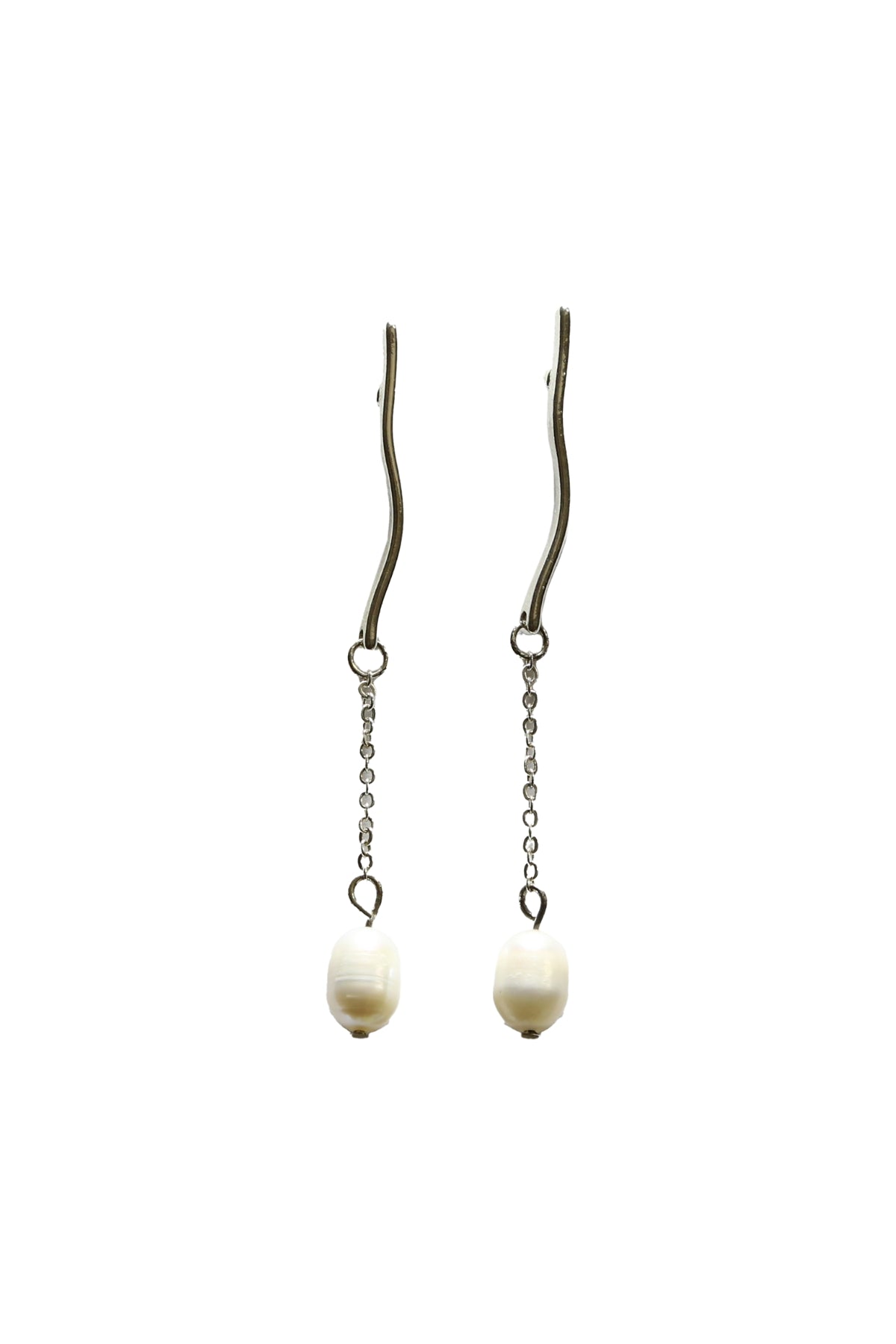 Refined and minimal, the Isla Pearl Drop Earrings in silver are the epitome of effortless sophistication. A delicate silver-toned chain holds a luminous freshwater pearl, suspended from an organically waved hook. Light and graceful, these earrings add a soft, natural elegance to everyday or occasion looks.