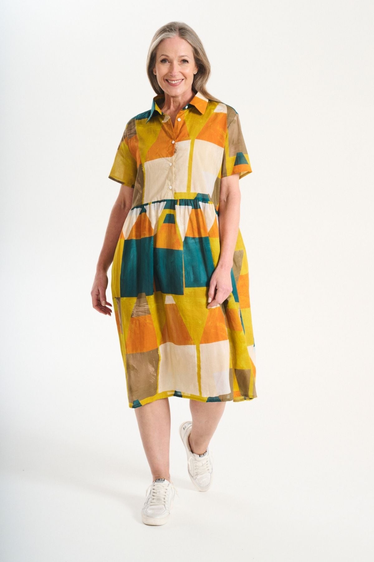 • The Villa Dress Long in Kasbah Tales is a great everyday shirt dress, that is extremely light and comfortable. This new version of the Villa Dress has a longer length skirt.