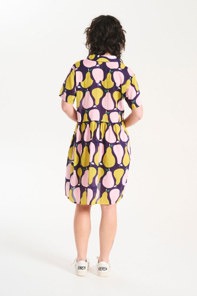 The Villa Dress in Pears printed seersucker is a great everyday shirt dress, that is extremely light and comfortable.