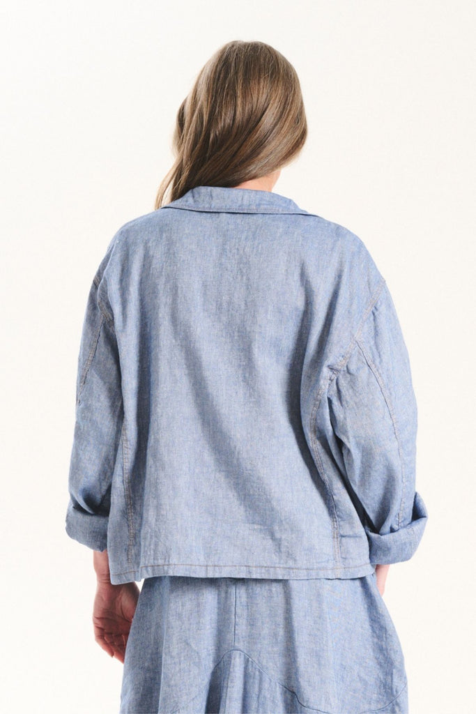 A modern take on the classic utility jacket, the Billie Jacket in Venice Beach linen is the perfect lightweight layer. Crafted from a washed linen cotton blend with a sun-softened feel, it features a relaxed silhouette, practical patch pockets, and subtle button details. Designed to be worn open or buttoned up, it pairs effortlessly with skirts, dresses, or matching linen bottoms for a fresh, coordinated look.