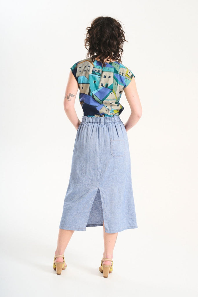 Hepburn Venice Beach Skirt Denim Blue in Linen