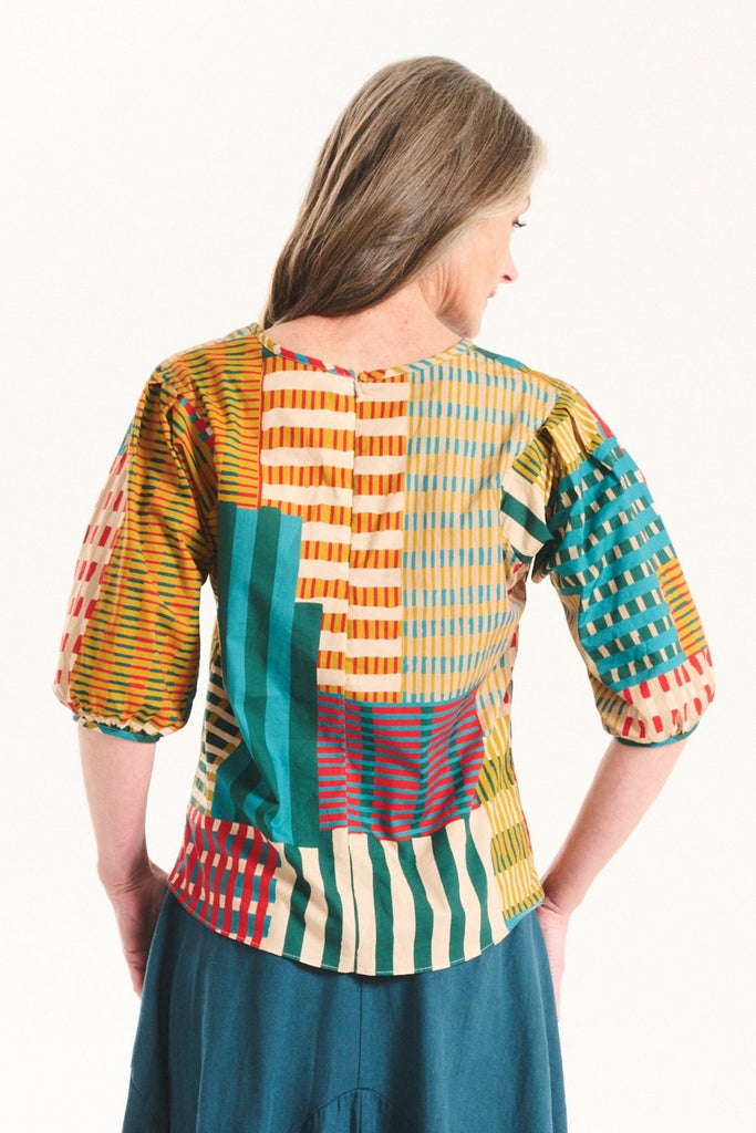 The signature Olga Blouse is a slim fit. It is true to size at the shoulders and bust, and sits close to the body while not being tight.
