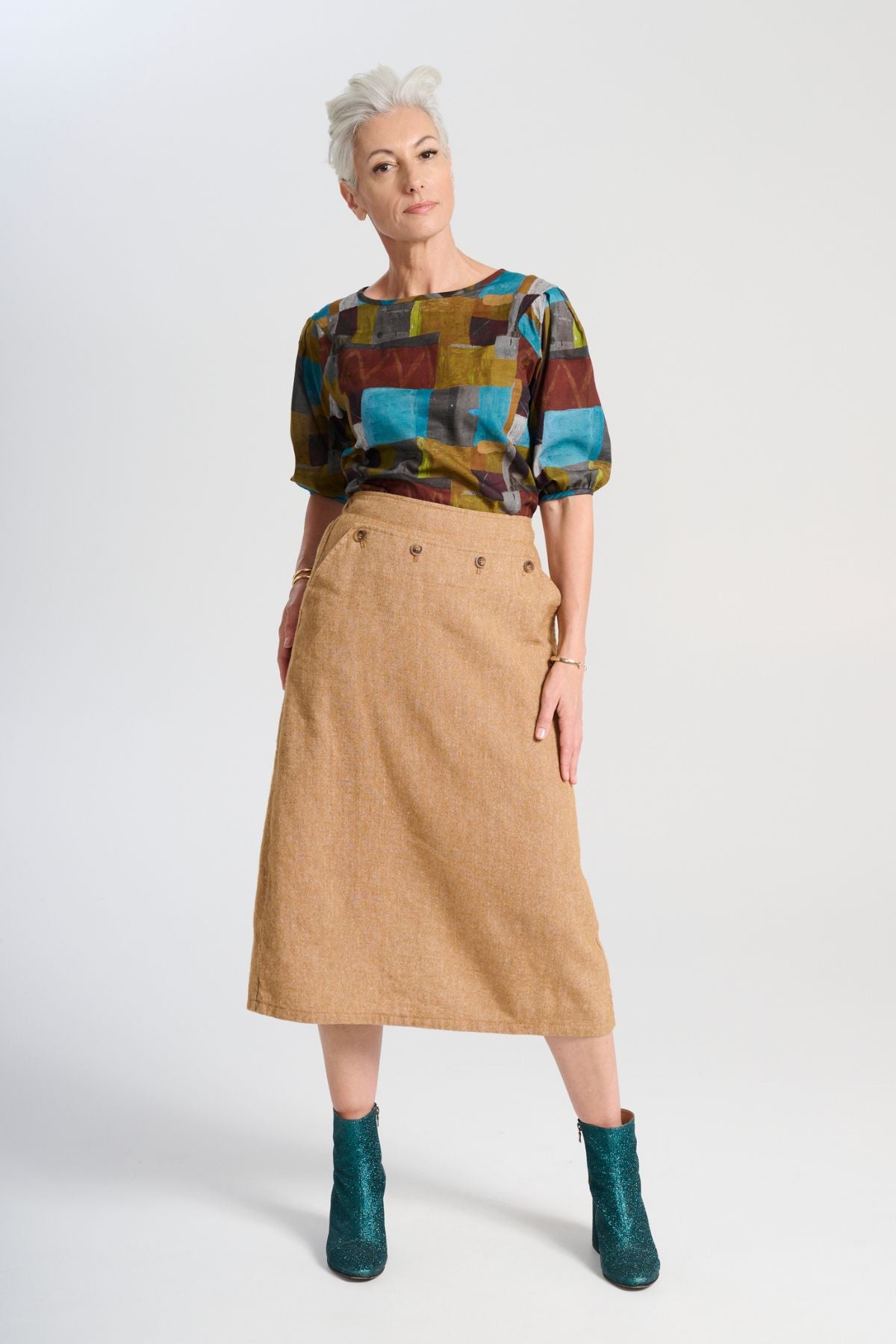 Hepburn Haven Skirt Mustard in Wool/Linen