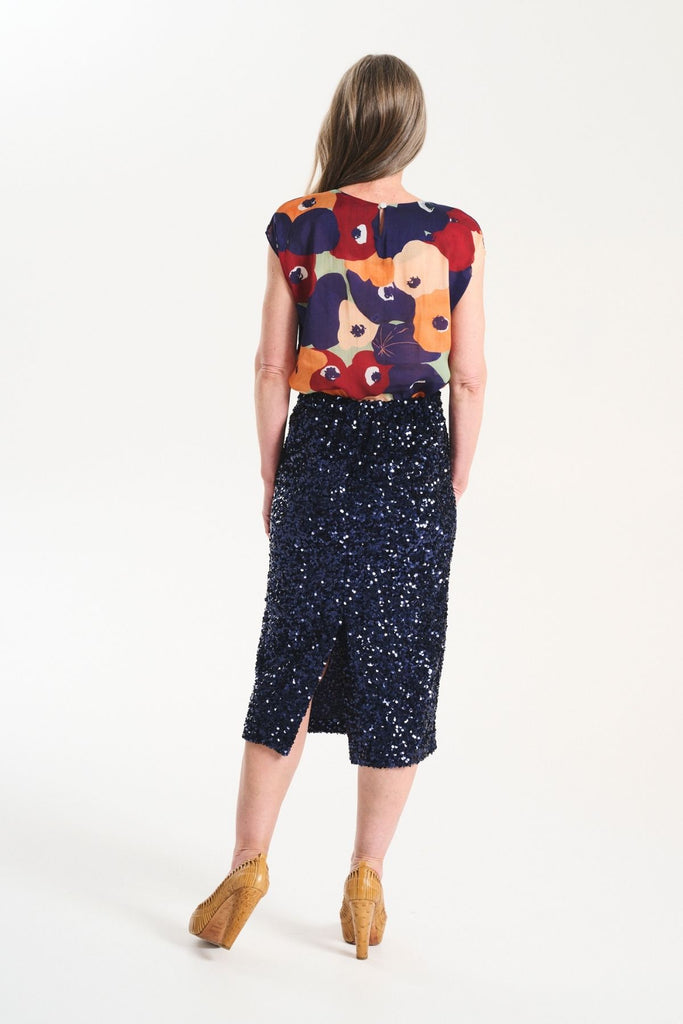 Nova Skirt Navy in Sequinned Velvet