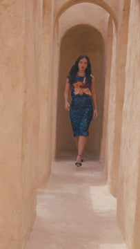 The standout feature of this skirt is the dazzling display of iridescent sequins that adorn the entire surface. These sequins create a mesmerising play of light and color, casting a radiant and shimmering effect that transforms any occasion into a special one. Each sequin is meticulously attached to the fabric, ensuring longevity and a flawless appearance.