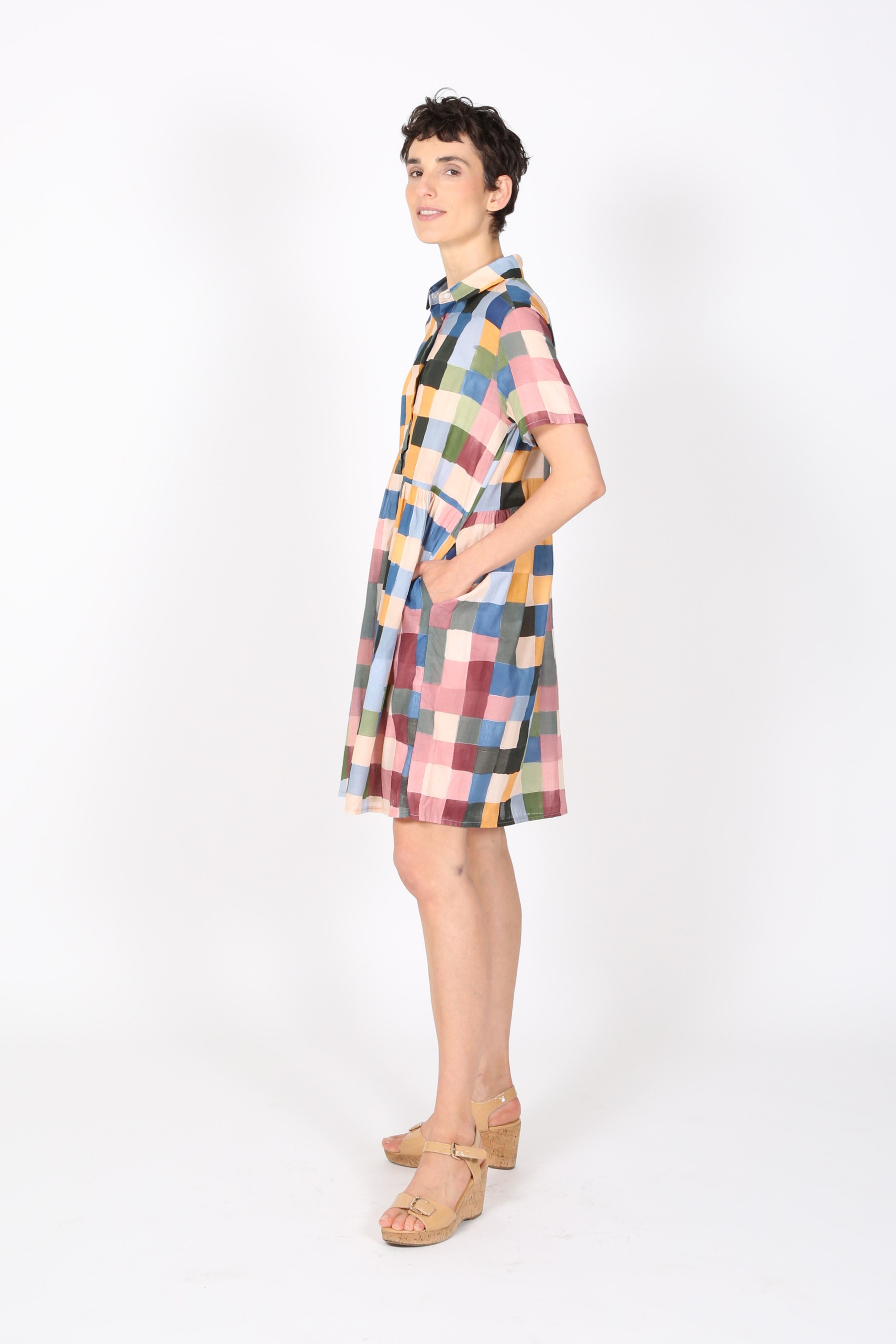 The Villa Dress in Tessera Blush printed 100% Cotton Voile is a great everyday shirt dress, that is extremely light and comfortable.