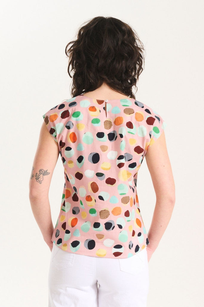 Confetti is a joyful, abstract print that captures the feeling of celebration in motion. Hand-painted dots scatter across the fabric in a playful mix of shapes and colours, creating a lively pattern that feels spontaneous and uplifting. Each brushstroke brings a sense of rhythm and whimsy, making every piece a little work of art.