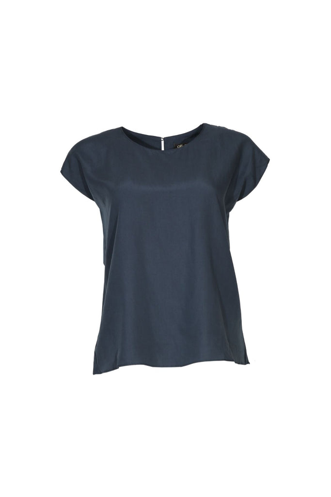 The signature Olga Tee is a slim fit. It is true to size at the shoulders and bust, and sits close to the body while not being tight. It is shaped to taper slightly at the waist.