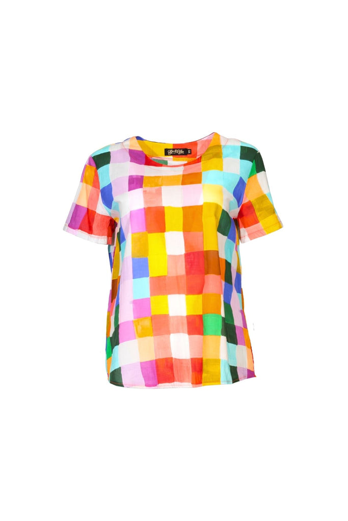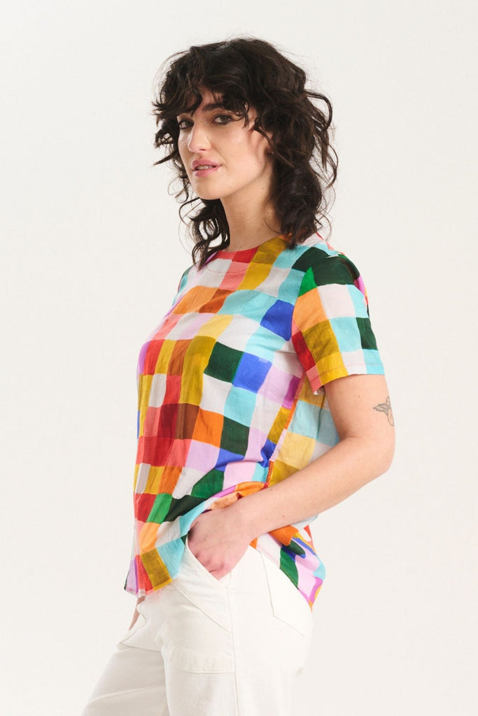 Vibrant and joyful, the Medina colourway brings the Tessera print to life in a festival of colour. Inspired by the energy of sunlit souks and mosaic courtyards, this palette mixes bold reds, pinks, oranges, greens, and blues in a lively, sun-drenched grid. Whether you're dressing for a getaway or brightening up your everyday, Medina is your go-to for an instant mood lift.