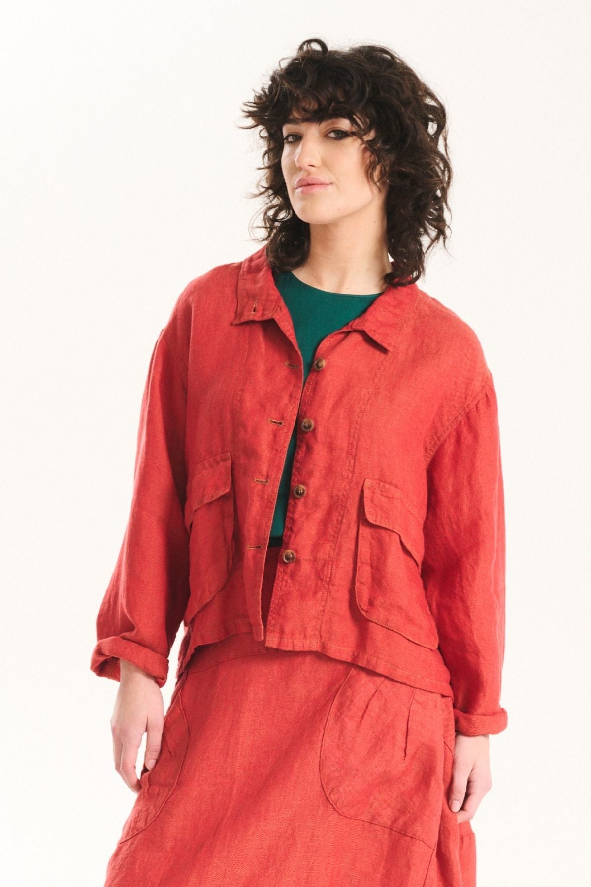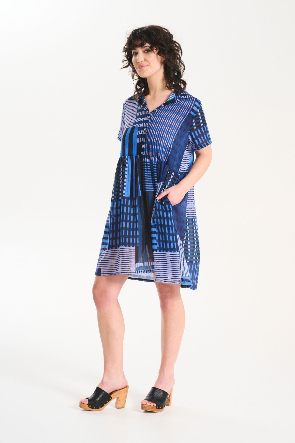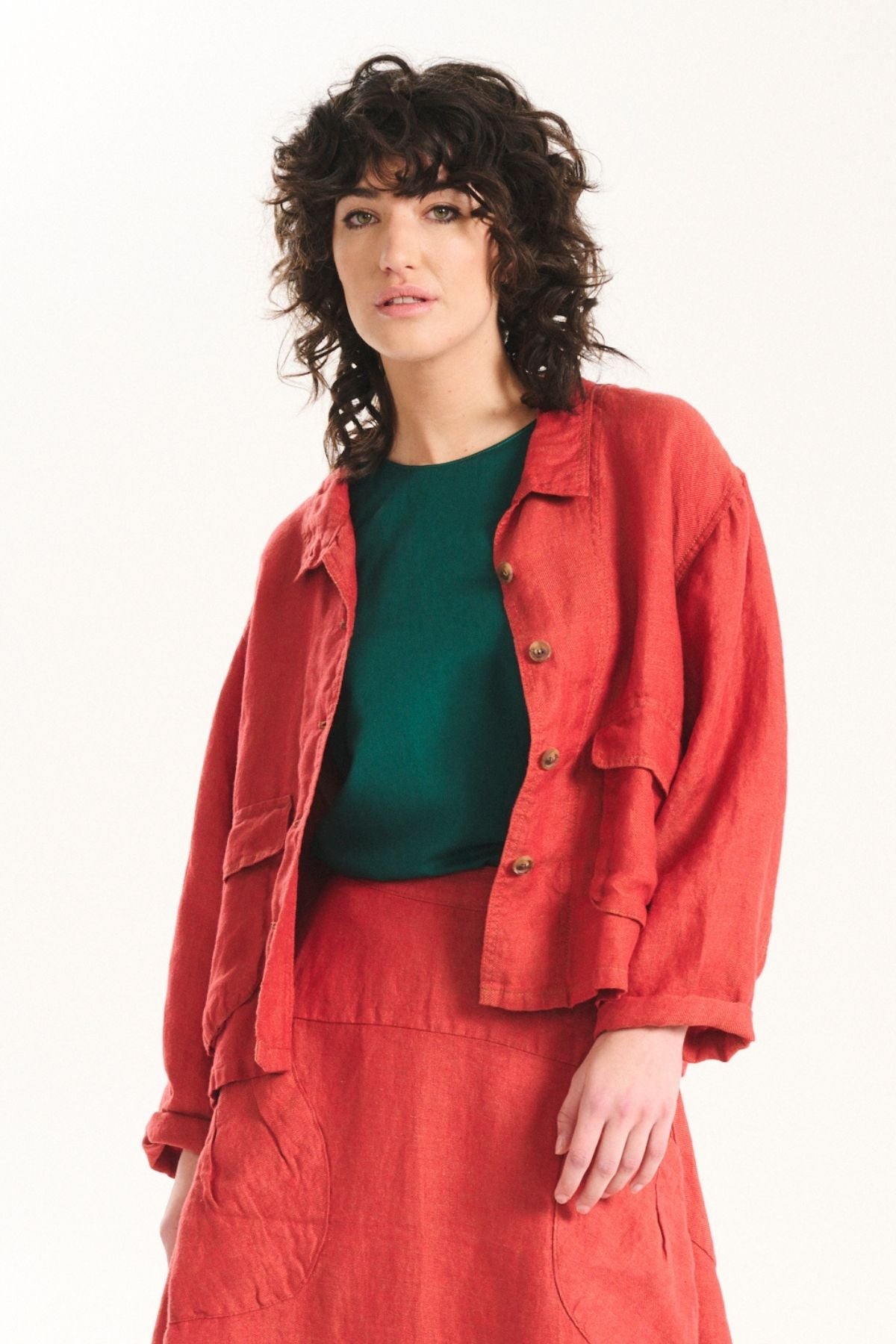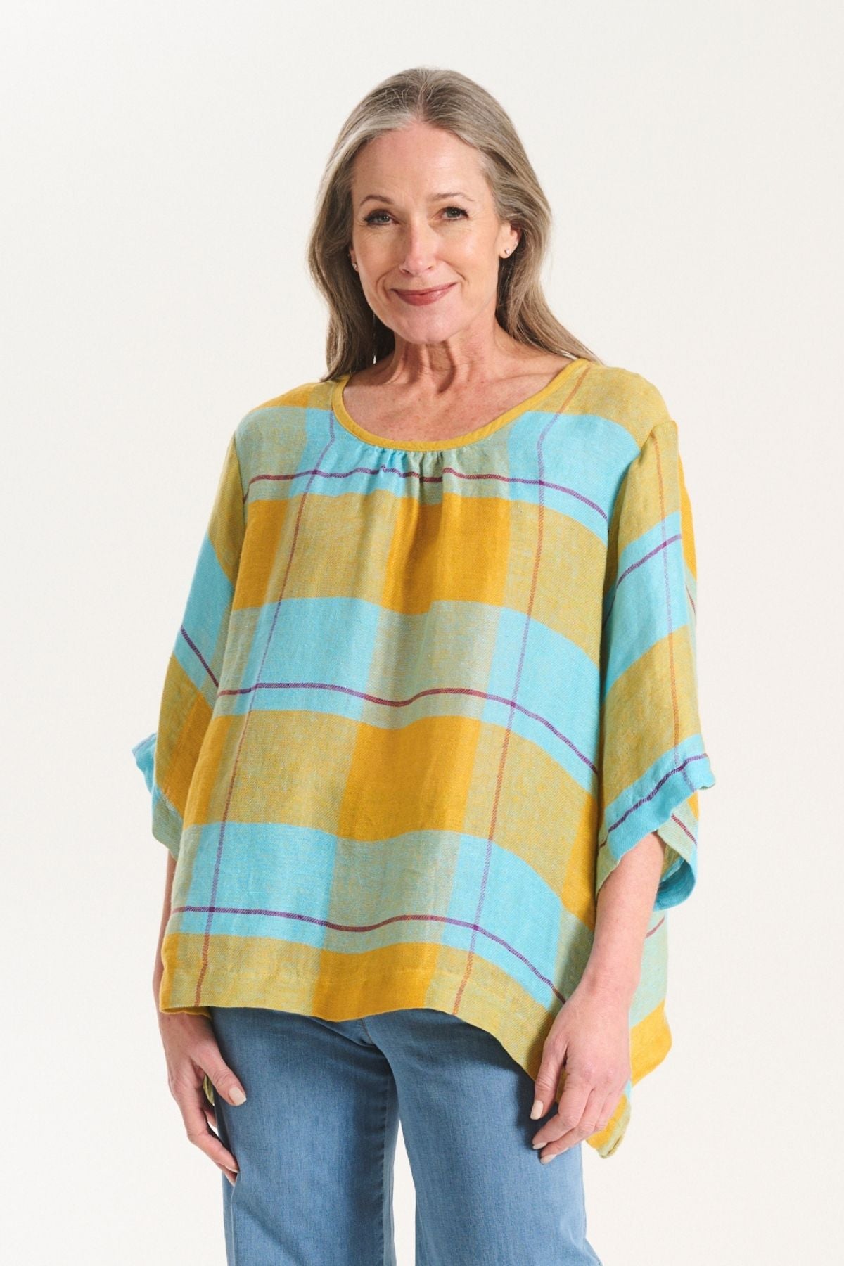The palette draws on warm skies, coastal stone, and sun-bleached landscapes, while the textiles: breathable linens, crinkled cottons, and textured checks; are chosen for their natural drape and effortless feel. Our signature silhouettes return, including the Tee, Top, Camisa, Villa Dress, Pleat Skirt, and Shirt, joined by standout newcomers that embody Roam’s relaxed elegance.