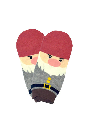 - Adorable gnome socks with accents of blush red, grey and brown