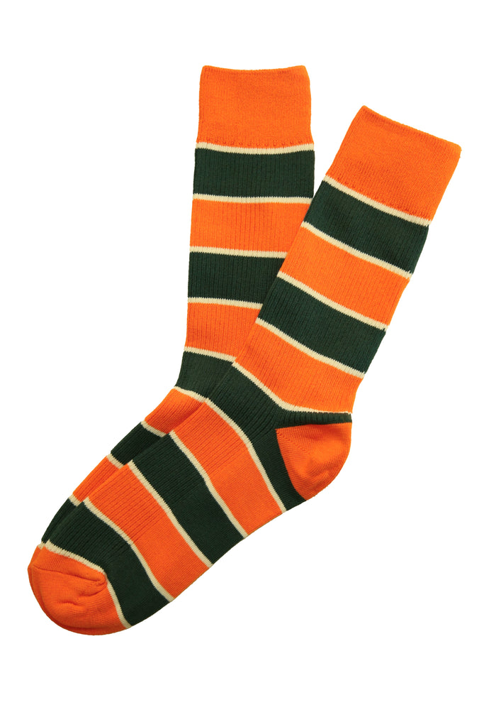 Milkbar Stripe Cotton Socks Orange and Bottle Green