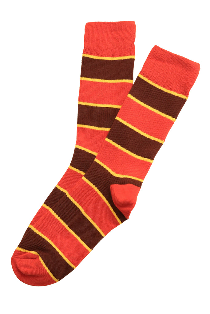 Turn up the dial on retro flair with the Milkbar Stripe Cotton Socks – Red and Burgundy. These bold beauties pair fire engine red with chocolatey burgundy and a zesty hit of yellow. The result? Pure ‘70s corner-store cool.
